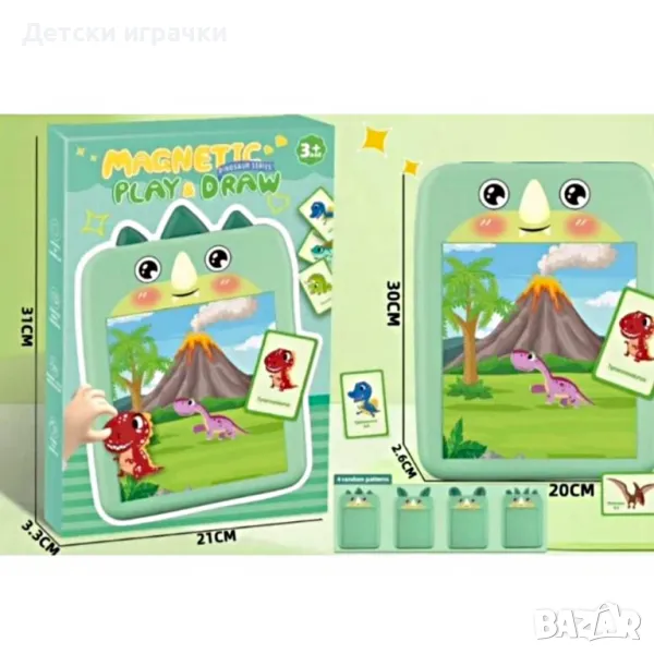 Дъска за рисуване с магнитен пъзел 2в1, Динозаври, комплект за момче