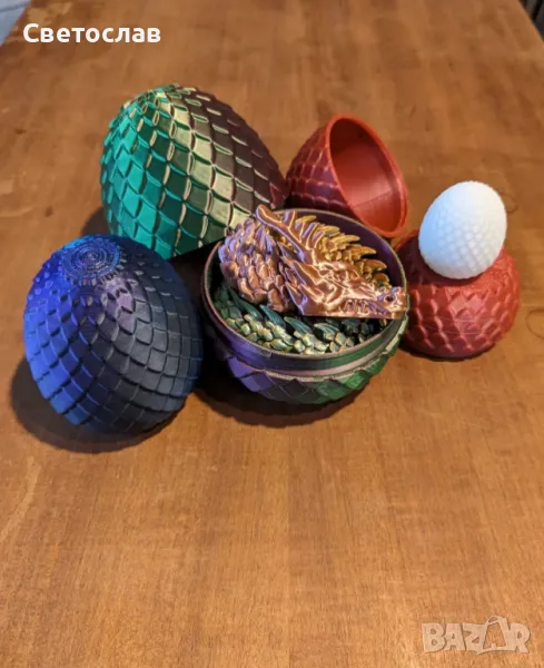 Предлагаме уникални 3D принтирани дракони, които могат да бъдат закупени както самостоятелно, така и с декоративни яйца, в които да бъдат поставени. Идеални за подарък, декорация или игра, те са подходящи за всички възрасти.Изработени от екологично чисти и нетоксични материали (PLA), безопасни за деца.Някои модели са с подвижни части, добавящи допълнителна интерактивност.Предлагаме възможност за персонализация – избор на цвят, размер и специални ефекти (светещи в тъмното, блестящи и др.).Възможност за закупуване на декоративни яйца, в които драконите могат да бъдат поставени – идеални за изненади или колекционерски комплекти.Подходящи както за играчки, така и за декоративни елементи.Цени:Ключодържатели: 8 лв.За останалите модели цените варират. Свържете се с нас за повече информация и уточняване на цена в зависимост от размер и персонализация.