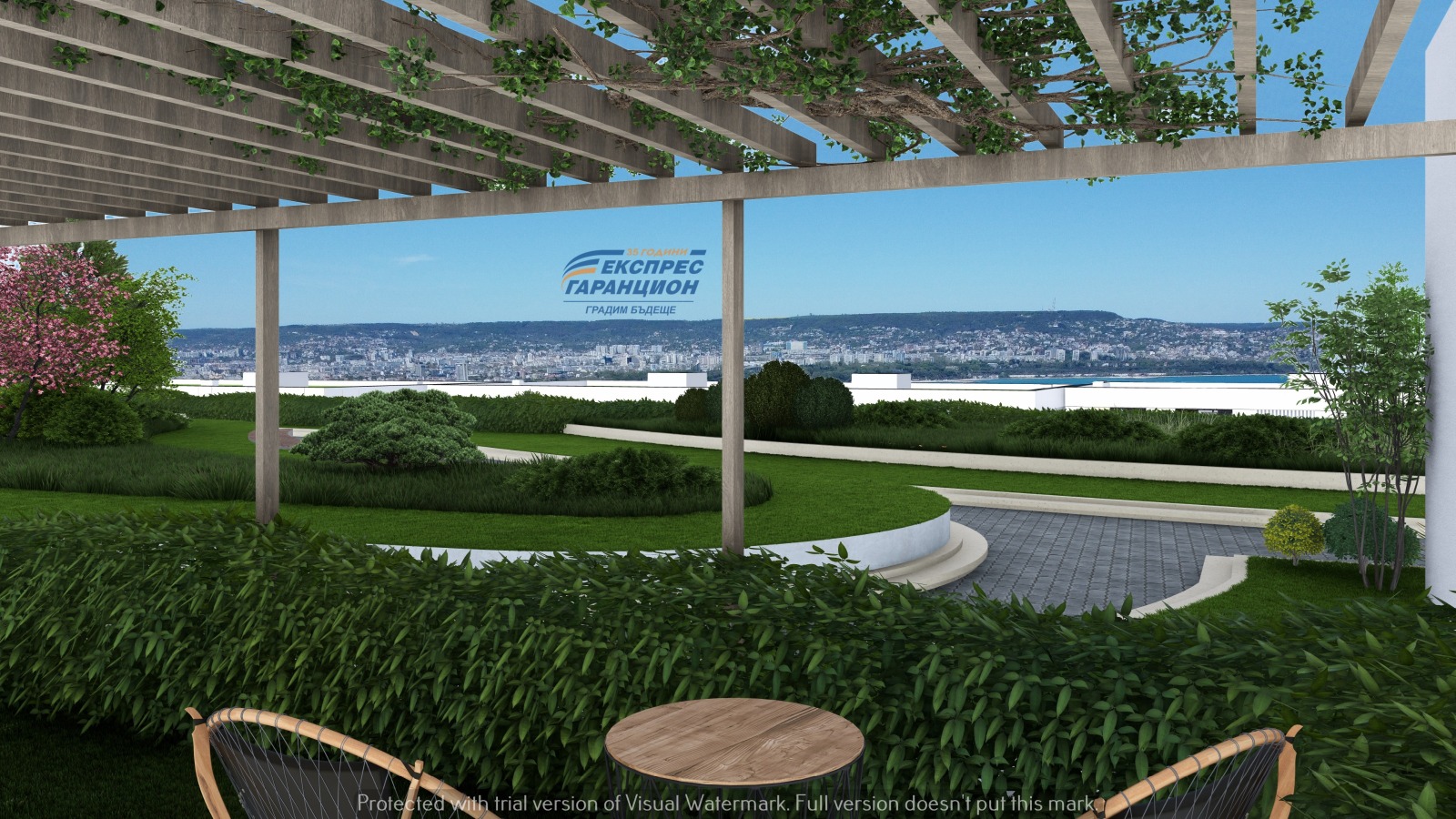 Ще създадем нови стандарти в комфорта, устойчивостта и модерната архитектура над брега на морето в гр.Варна! Ние в ЕКСПРЕС ГАРАНЦИОН вярваме, че домът е нещо повече от сграда той е уют, бъдеще, инвестиция и мечта! Къде? Панорамната площадка кв.Галата. Точно така, уникалната гледка към морето, но не от града, а към морето и града! Имотът ни е с лице на главния път за кв.Галата, който е изцяло подновен с две автобуски спирки и 2 линии на градския транспорт. Центъра на кв.Аспарухово е на 5 мин, където има основно, средно училище и гимназия. Комплексът ще разполага с красиво аранжирани градини; детска градина; детска занималня; велоалея и алеи за разходка; детски площадки; спортни игрища; кътове с BBQ за срещи с приятели; кафе-сладкарница; ресторант; скай-бар; амфитетър; хотел; офис сграда; спортен център с плувен закрит басейн; фитнес център; зали за събития и др.