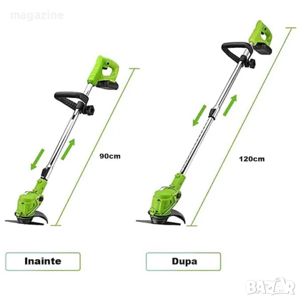 Телескопичен акумулаторен градински тример-трион за трева. 2бр. батерии