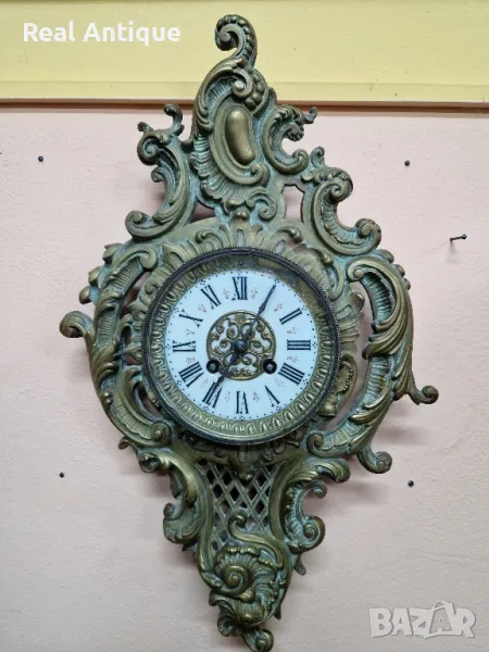Продавам рядък антикварен колекционерски френски бронзов стенен часовник Japy Freres от 1870 г в перфектно състояние без никакви забележки отлично работещ с оригиналното си махало и ключе. Размери 48 см на 25 см. Работя с всички куриери. Отговарям бързо.