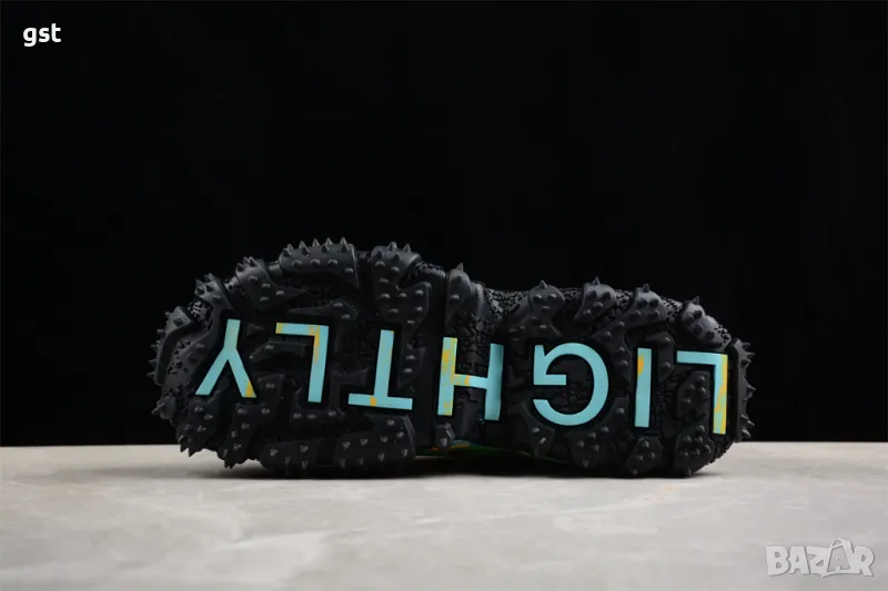 The entire shoe body is presented in a mid-tube shape, and the upper is made of suede and composite materials. The transparent Swoosh logo allows the visual to focus more on the shape of the shoe itself. The inside of the shoe body still has the words OFF-WHITE forNike, but the shoe name "Terra Forma" is presented in a graffiti-like way. The most eye-catching part of the whole pair of shoes is the huge tongue and the exaggerated outsole. The asymmetrical high tongue is like a butterfly wing, covered with floating patterns and the hole design commonly used by Off-White in the later period. There is also a hidden zipper cover design between the tongue and the shoelaces, which adds a sense of functionality to the shoe. The words "TREAD LIGHTLY" are printed in the middle of the outsole, and other areas have a spike-like design similar to Off-White X Nike Air Zoom Tempo NEXT%. The midsole material covered with visible air cushions is mixed in a variety of different colors.