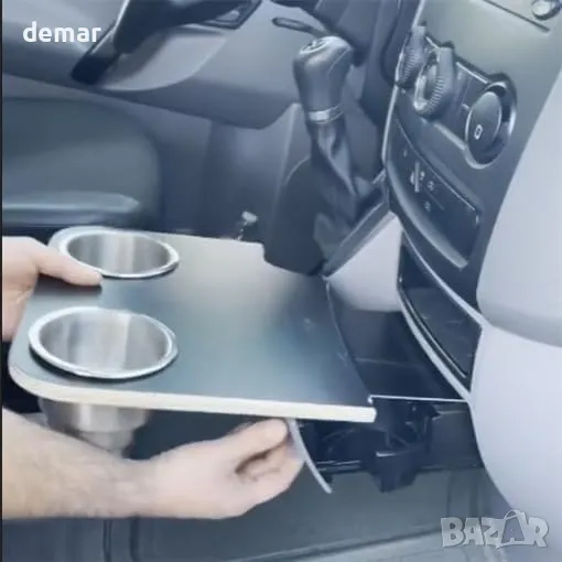 2. Лесен монтаж, поставя се върху фабричните плъзгащи се поставки за чаши, превръщайки се в малка масичка. Отлично място за поставяне на закуски, телефон или други малки предмети.