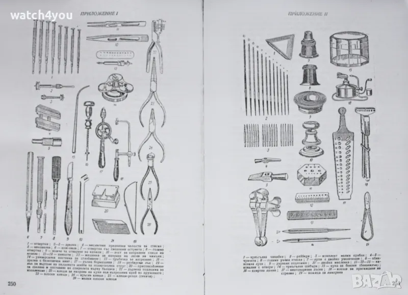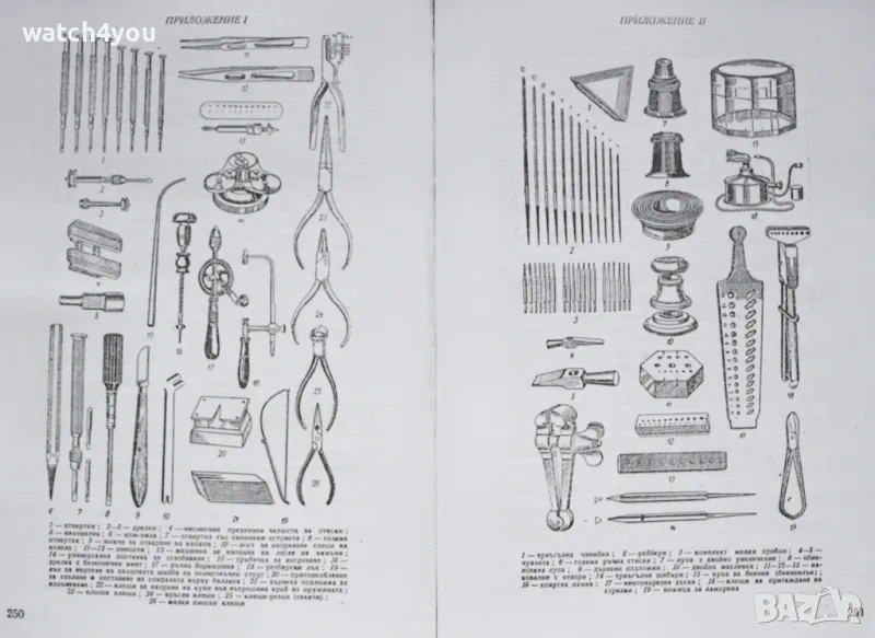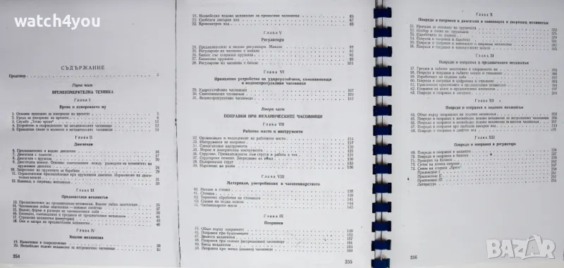 Съдържа всички основни принцип на часовникарството, устройство на инструменти, подробни схеми и фигури за ремонт на механични часовници.