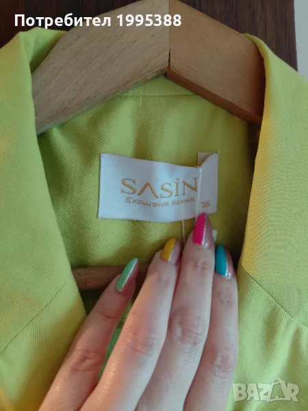 Продавам ново неоново жълто-зелено сако на Sasin. Стилно и модерно, подходящо за всякакви поводи. Съчетайте го с различни тоалети и създайте своя уникален вид.Подходящо е за сезон пролет/лято.Размер 36