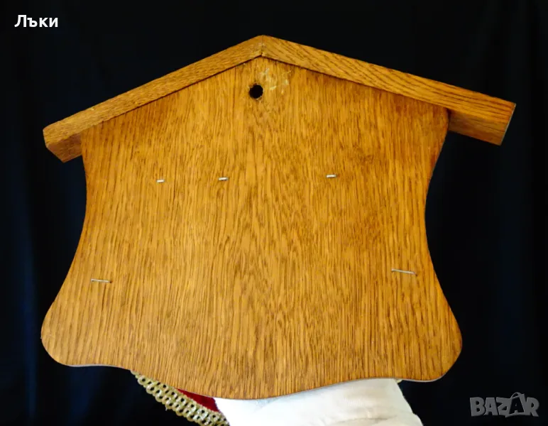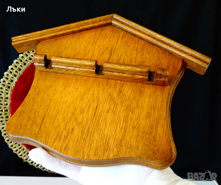 естествено дърво – немски дъб.Има красив дизайн на къщичка.Размер 20 х 26 х 4