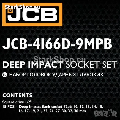 Професионални Дълбоки Ударни Вложки Комплект 12-стенни 15части (10-36мм) JCB – 4166D-9MPB → Обява 50259712