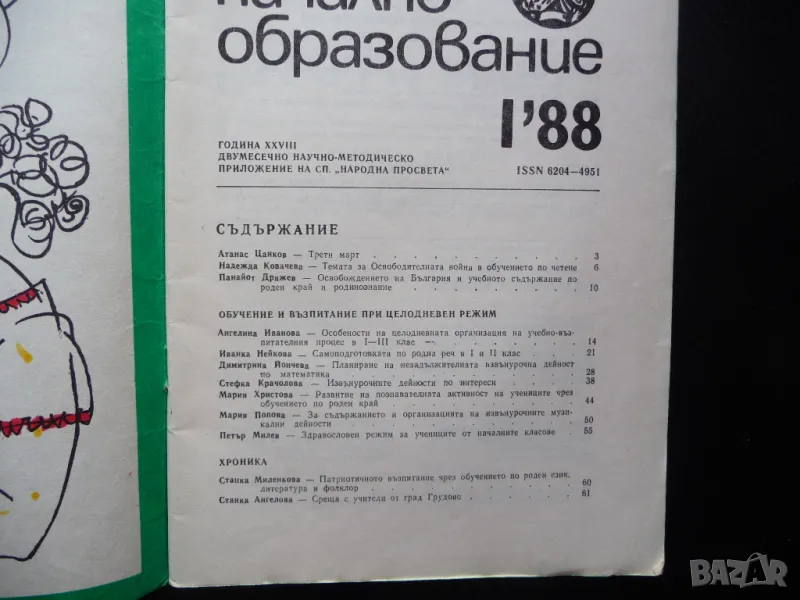 Начално образование 1/1988. Орган на Министерството на народната просвета и ЦК на Съюза на българските учители.