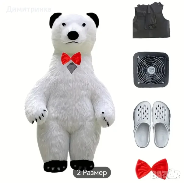 Пълен комплект- Бяло мече-Костюм с батерия → Обява 50260995