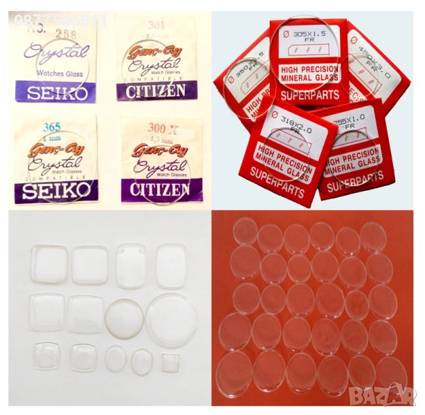 Стъкла, Баланси, Оси, Ремонтоари, Коронки, Анкери, Пружини, Колелета, Колела Уплътнения за заден капак, Уплътнители, Патенти и др.