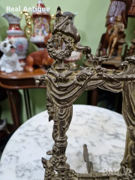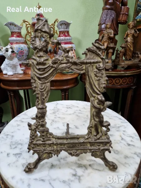 Продавам стара страхотна голяма антикварна английска бронзова поставка за снимки в перфектно състояние без никакви забележки. Тежка здрава масивна. Височина 30 см ширина 19 см. Прекрасно допълнение към интериора на Вашия дом офис вила. Подходяща и за подарък. Работя с всички куриери. Отговарям бързо.