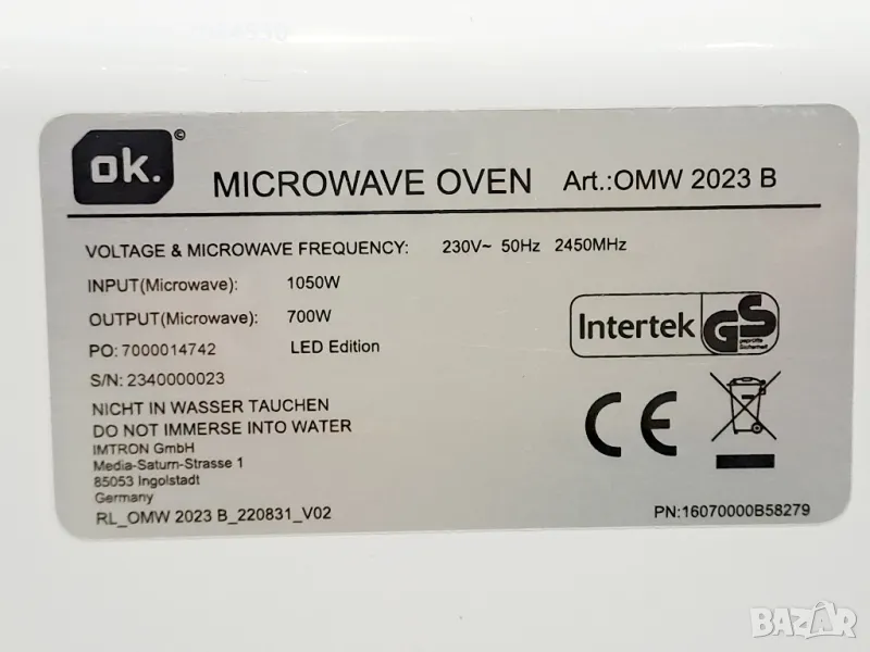 Микровълнова печка ОК. -1050w, снимка 1 - Микровълнови - 50263057 Микровълнова печка ОК. -1050w, снимка 2 - Микровълнови - 50263057 Микровълнова печка ОК. -1050w, снимка 3 - Микровълнови - 50263057 Микровълнова печка ОК. -1050w, снимка 4 - Микровълнови - 50263057 Микровълнова печка ОК. -1050w, снимка 5 - Микровълнови - 50263057 1/5