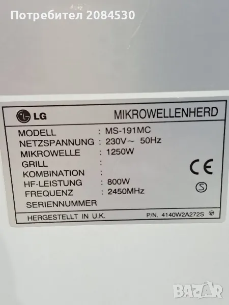 Микровълнова печка  LG  -1250w, снимка 1 - Микровълнови - 50263750 Микровълнова печка  LG  -1250w, снимка 2 - Микровълнови - 50263750 Микровълнова печка  LG  -1250w, снимка 3 - Микровълнови - 50263750 Микровълнова печка  LG  -1250w, снимка 4 - Микровълнови - 50263750 Микровълнова печка  LG  -1250w, снимка 5 - Микровълнови - 50263750 Микровълнова печка  LG  -1250w, снимка 6 - Микровълнови - 50263750 Микровълнова печка  LG  -1250w, снимка 7 - Микровълнови - 50263750 1/7