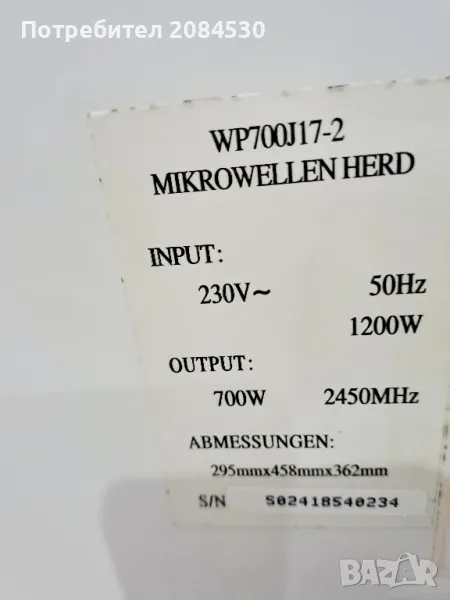 Микровълнова печка PRO VISION -1200w → Обява 50264099
