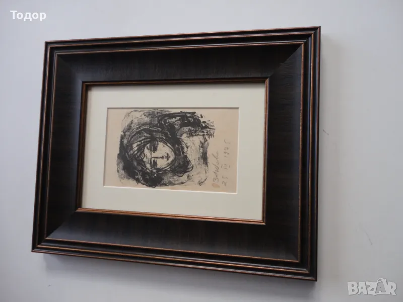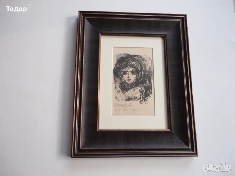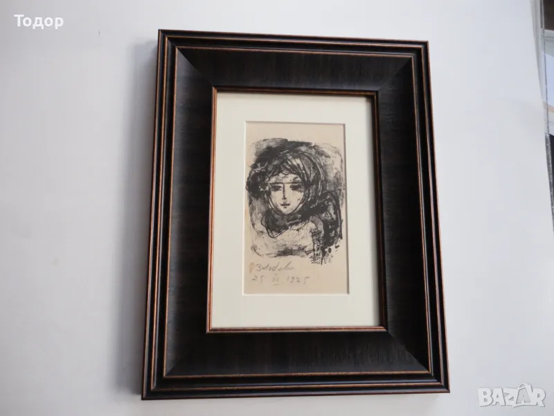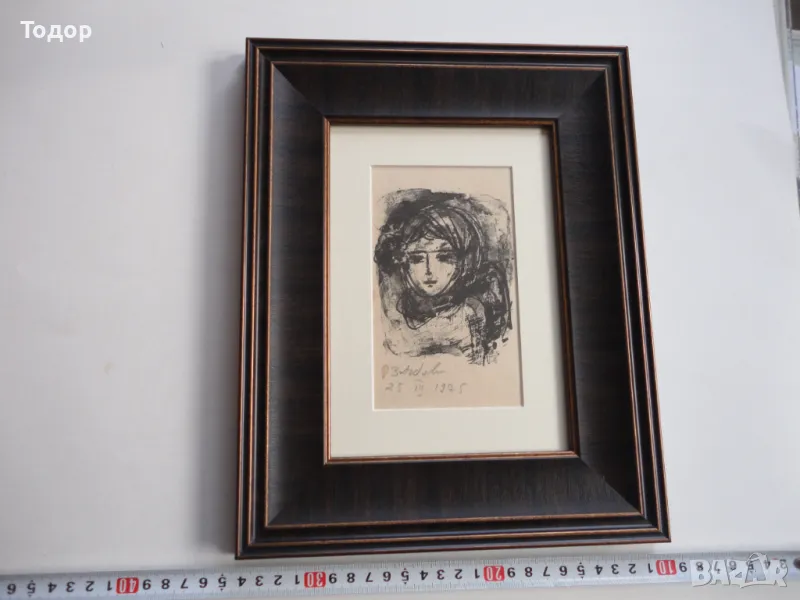 Височина с рамка 30,5 см Ширина с рамка 24,5 см Ширина на рамката 5 см Размери само на образа без паспартуто 15 см на 8,7 см Оригинал