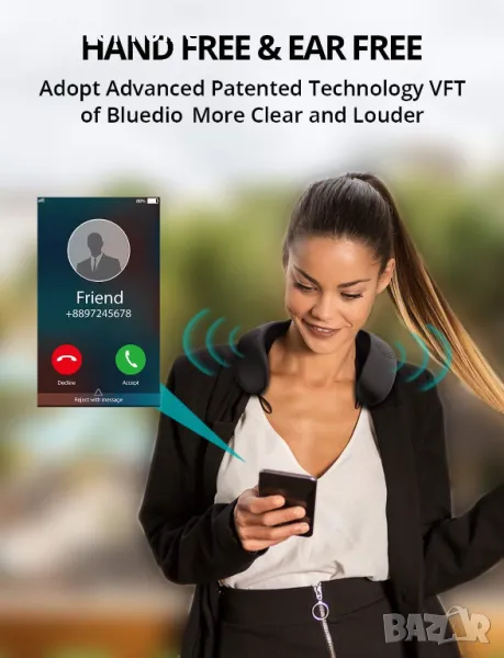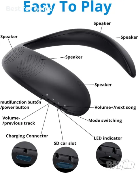 Преносим и носим високоговорител - освободете ръцете и ушите си, с този носим Bluetooth високоговорител на врата си можете да се наслаждавате на музика, независимо дали готвите вечеря или спортувате на открито, като ходене, каране на колело, катерене по планини и др. Можете да освободите ръцете и ушите си, за да се наслаждавате на музика, да приемате повиквания и все пак да останете свързани със света около вас.