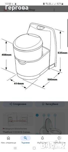 1. Почти нова въртяща се химическа тоалетна. Модел Thetford C220 с касета на колела и външно обслужване. Цена 500 лв.