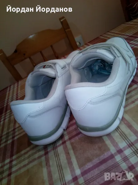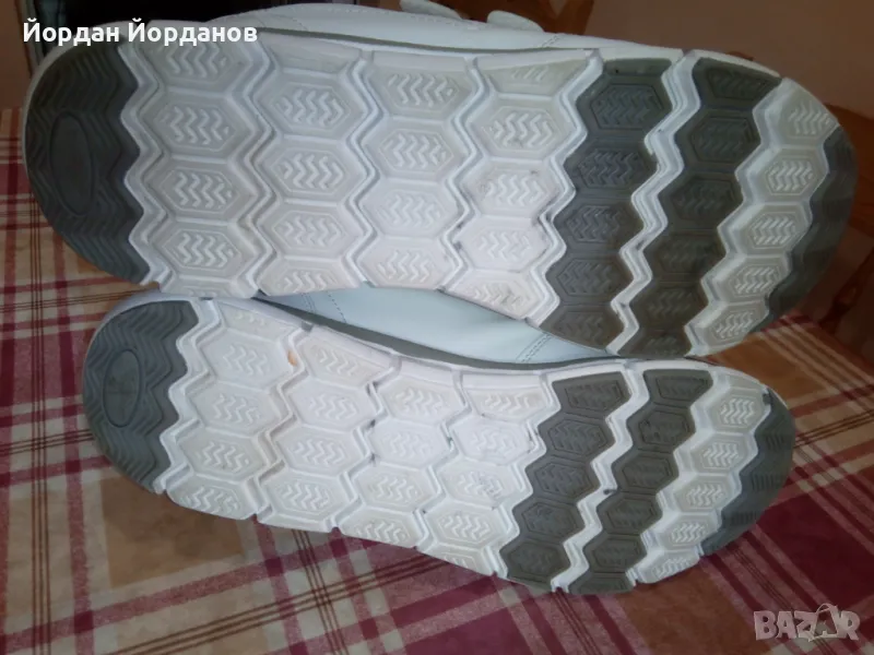 Оригинални мъжки, кожени, ежедневни маратонки,в отлично състояние неразличими от нови, обувани са веднъж за един час,бели, пише 46 номер, но според мен са 45.
