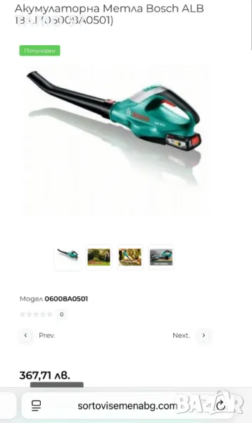 при желание на клиента може да се окомплектова с батерия и зарядно и цената тогава ще е 175лв. Пращаме с опция преглед и тест с куриерска фирма еконт може и лично предаване за гр. Шумен. Магазинската цена на е: 367лв.