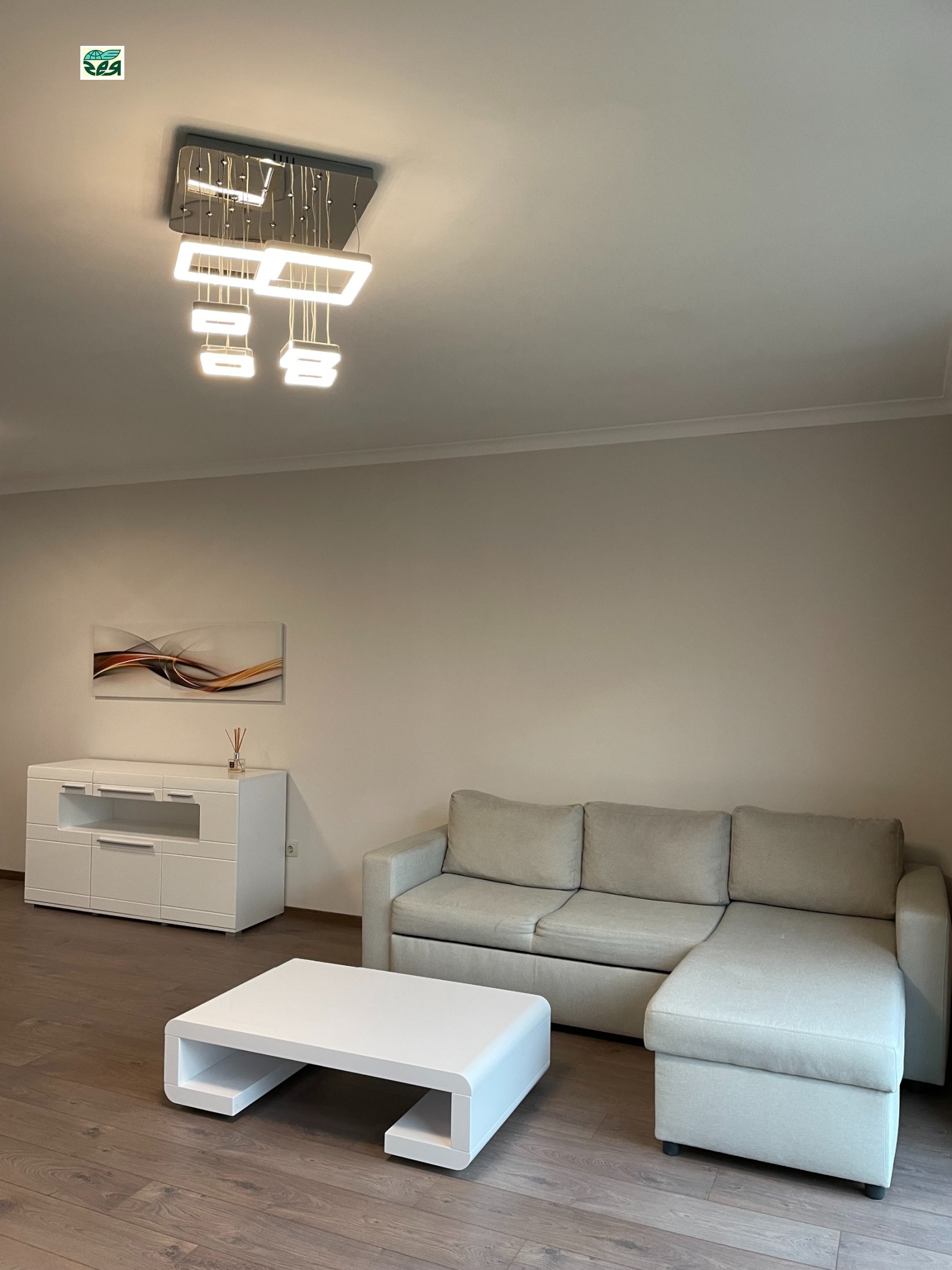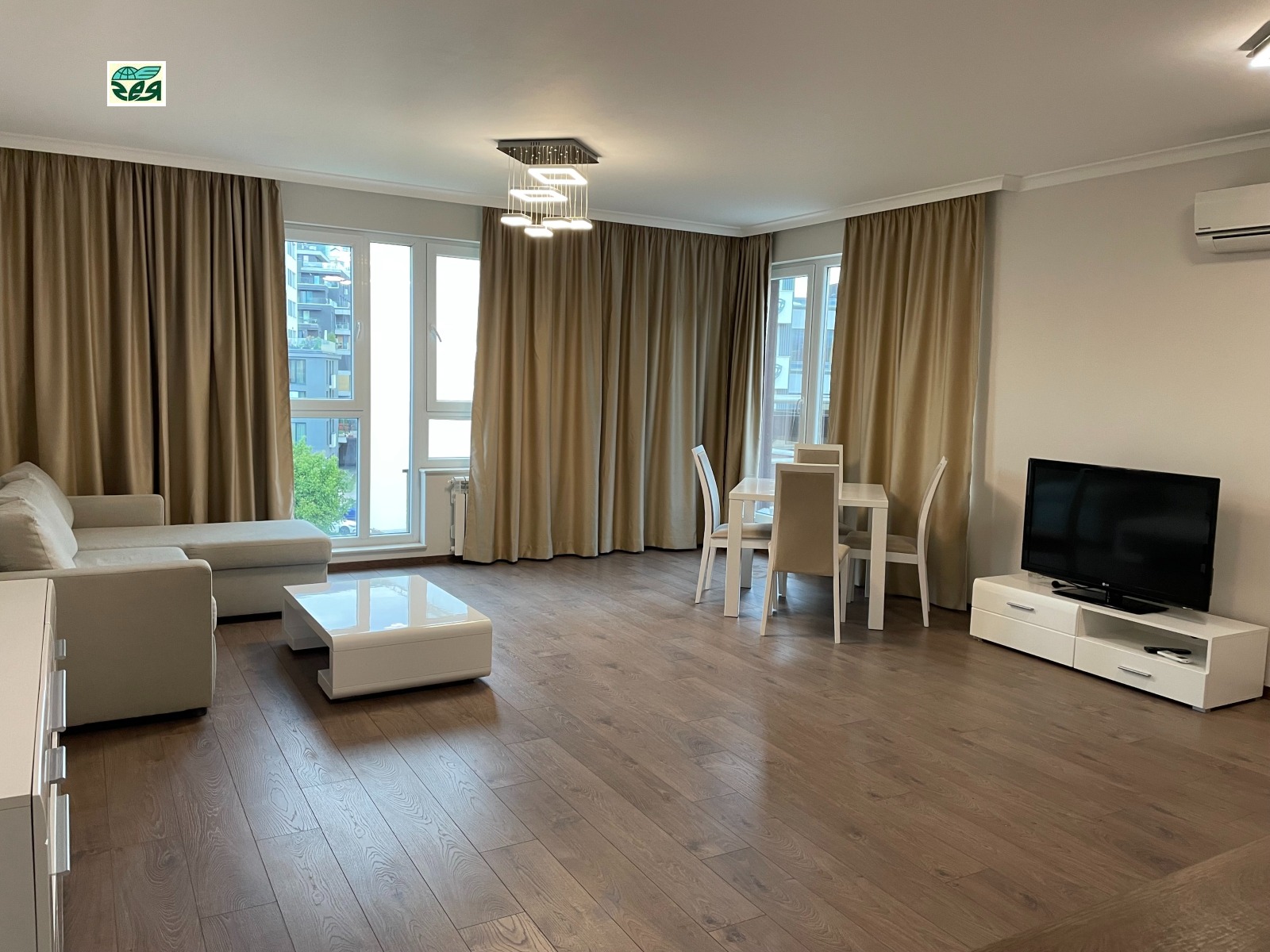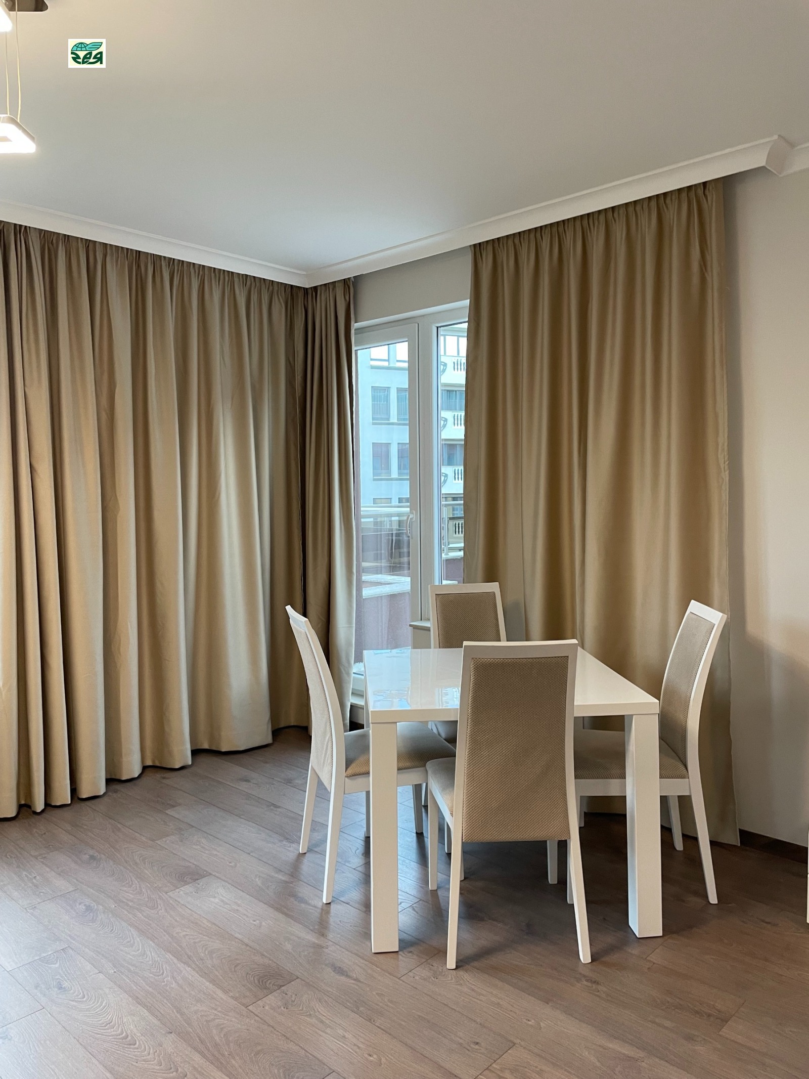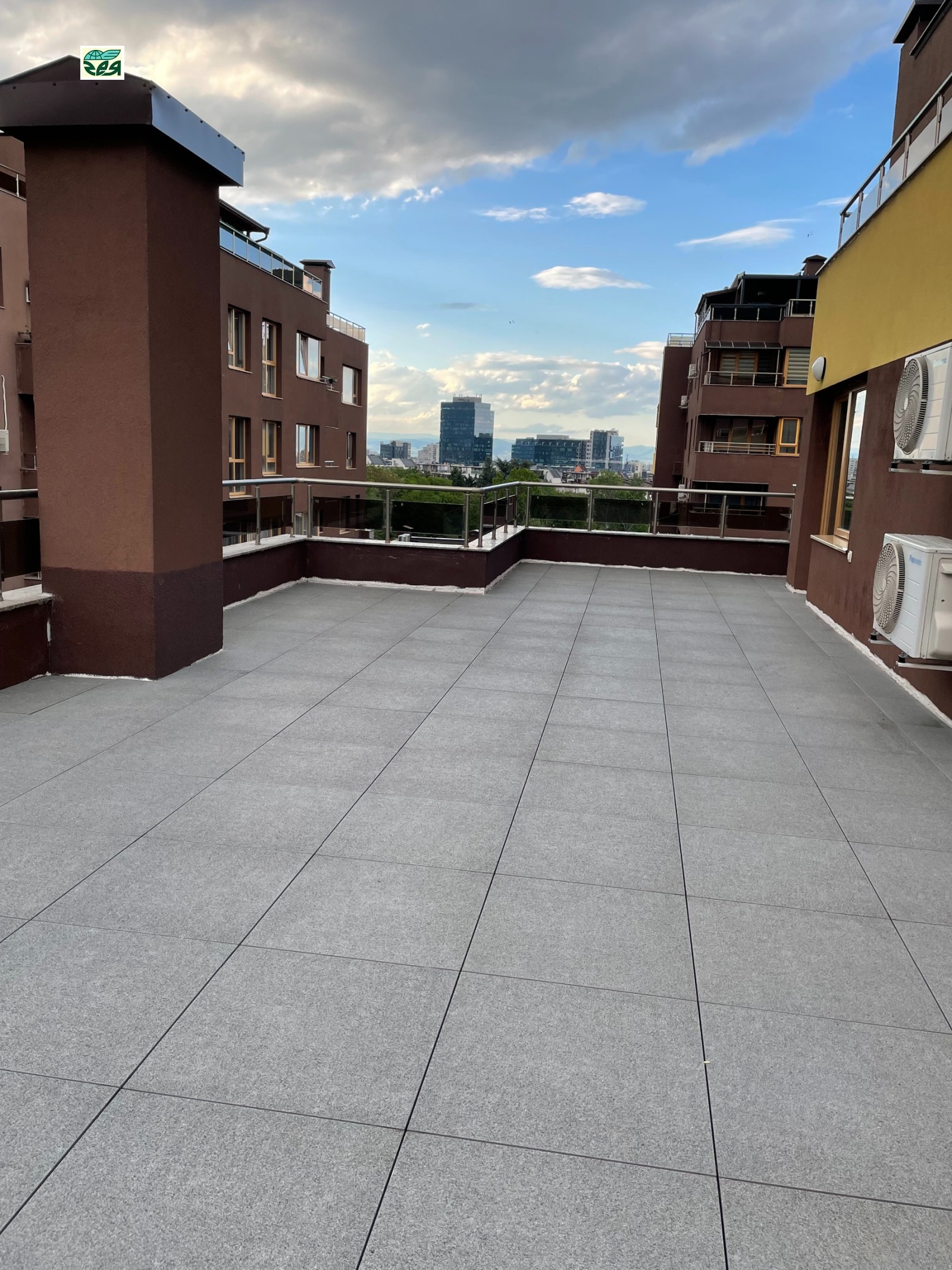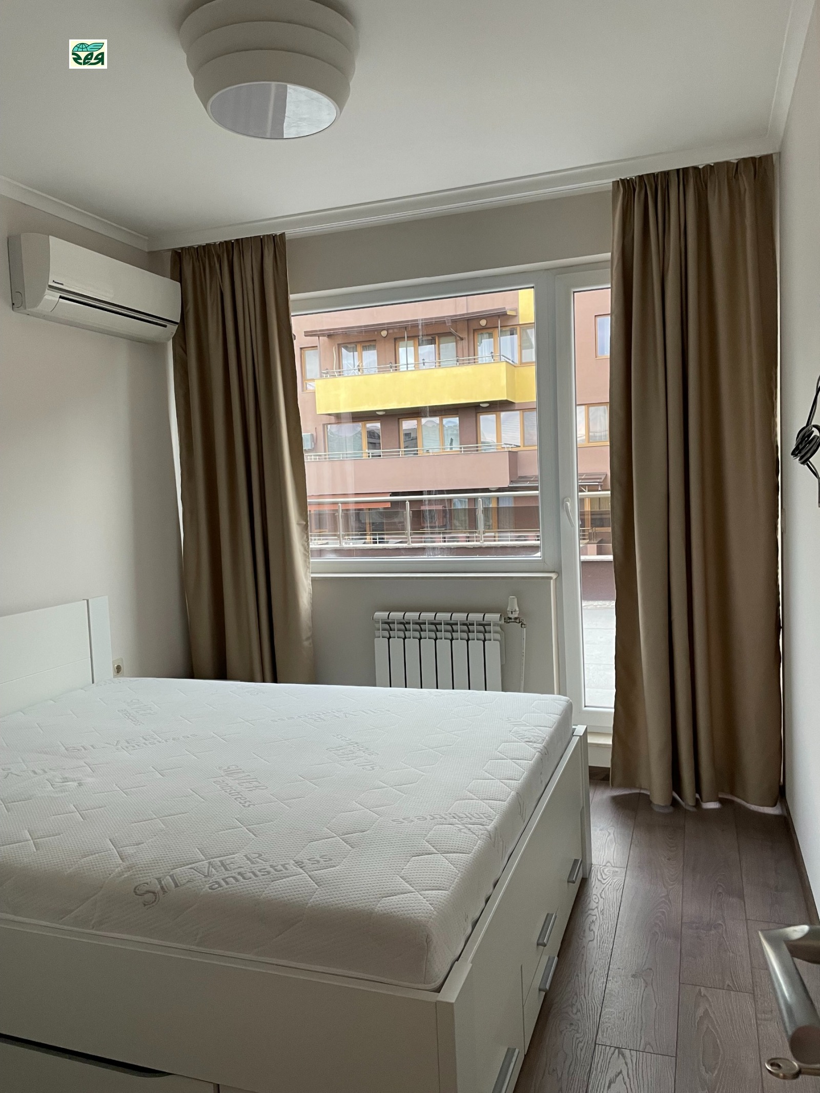 Апатамента е със застроена площ 60.67кв.м., площ с ид.части 70.24кв., към него има тераса с площ 60.57кв.м. На терасата се излиза от хола и от спалнята.Състои се от просторна дневна с площ около 40кв.м., спалня -12кв.м., баня с тоалетна и коридор. Холът е с изложение юг и запад, спалнята е със западно изложение. Кухнята е поръчкова МДФ -бял ляк, с вградени: котлони, фурна, хадилник, миялна и абсорбатор. Дневната-шкаф за телевизор, холен шкаф, разтегателен диван с лежанка,холна масичка, маса за хранене с четири стола. Спалнята-компект спалня с нощни шкафчета и гардероб. Коридора:гардероб в който е поставена автоматина пералня, шкаф за обувки и огледало.Климатици 'Panasonic' в спалнята и хола. Баня с тоалетна-фаянс и теракот, душ кабина, вградено тоаетно казанче 'Геберит'. Алуминиеви радиатори в стаите.Стените са на латекс, пода на ламинат.Блиндирана входна врата. Терасата е ремонтирана преди 1год., като е положена хидроизолация за басейни и плочки на крачета.Апартамента е пребоядисан с латекс и е готов за нанасяне.Комплексът е озеленен и добре поддържан.Жива охрана.Контролиран достъп. Таксата за поддръжка е 74лв. на месец. При желание може да се закупи и паркомясто на отделна цена.