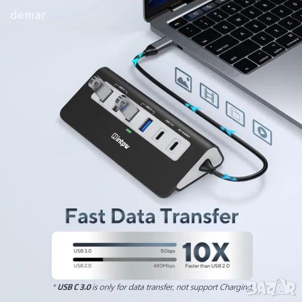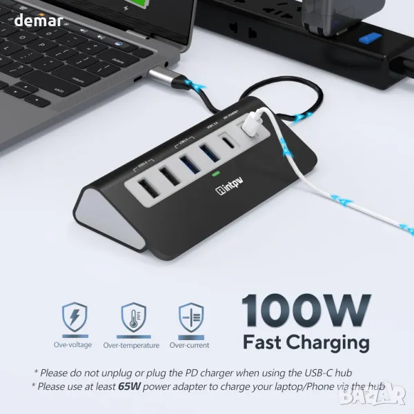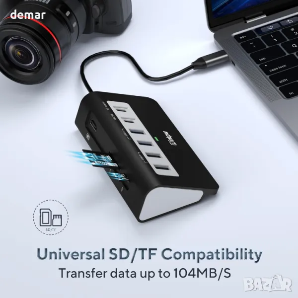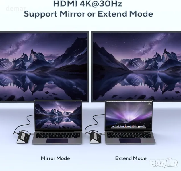 Този 9-в-1 USB-C хъб предлага широка гама от основни портове, включително HDMI, слотове за SD/microSD карти, множество USB-A и USB-C портове за високоскоростен трансфер на данни до 5Gbps и 100W PD порт за зареждане за ефективно захранване. Дългият му 1 метър кабел добавя гъвкавост, а алуминиевият корпус осигурява по-добро разсейване на топлината и издръжливост. Ергономичният ъгъл от 32 градуса с гумени подложки осигурява стабилен и лесен за употреба дизайн. Той поддържа 4K@30Hz HDMI изход за ясен дисплей с висока резолюция и е съвместим с широка гама от USB-C устройства, включително MacBook, Chromebook и лаптопи с Windows, което го прави идеален както за работа, така и за пътуване.