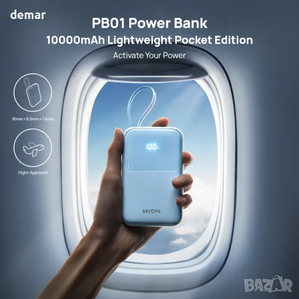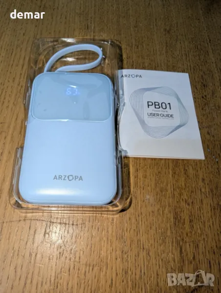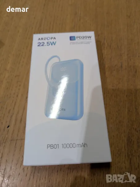 Преносима външна батерия ARZOPA 10000mAh, бързо зареждане 22.5W, вграден USB-C