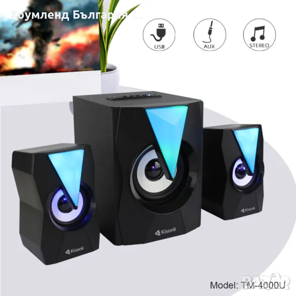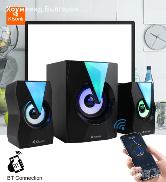 Мощни светещи блутут тонконони 2+1 с буфер закомпютър и телевизор
