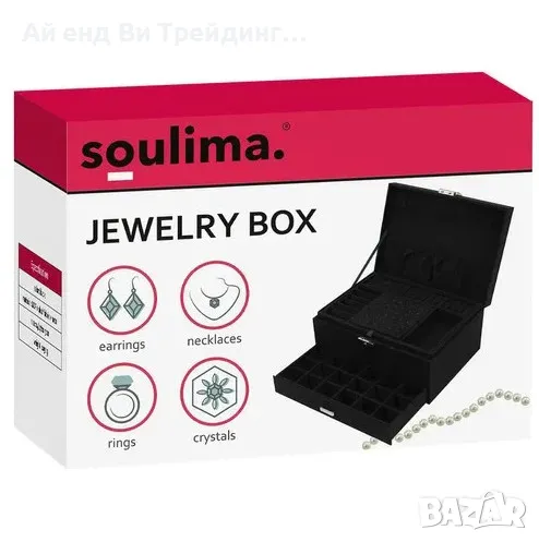 Кутията за бижута предлага стилно и практично решение за съхранение и организация на ценните ви аксесоари. С добре разпределено вътрешно пространство, тя разполага с отделения за пръстени, колиета, гривни, обеци, часовници и висулки, осигурявайки лесен достъп и защита.