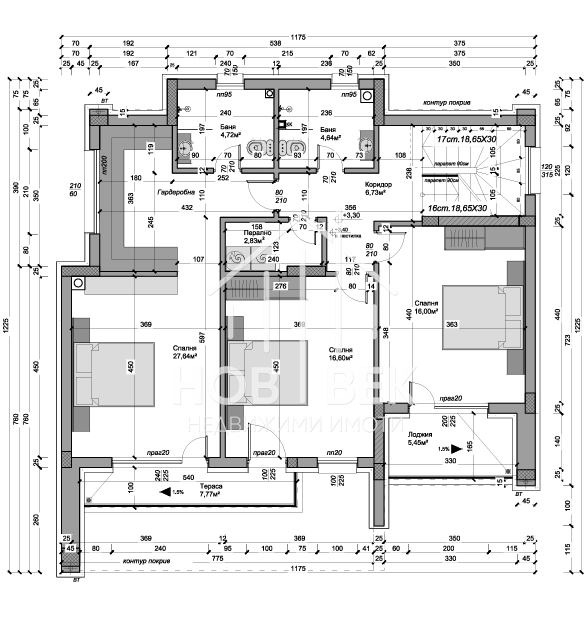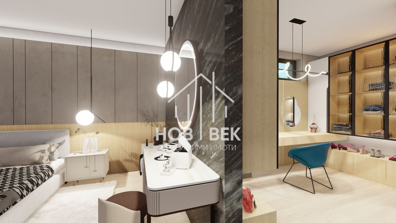 Родителска спалня (27,64 кв.м) с гардеробна, собствена баня с WC (4,72 кв.м) и тераса (7,77 кв.м)