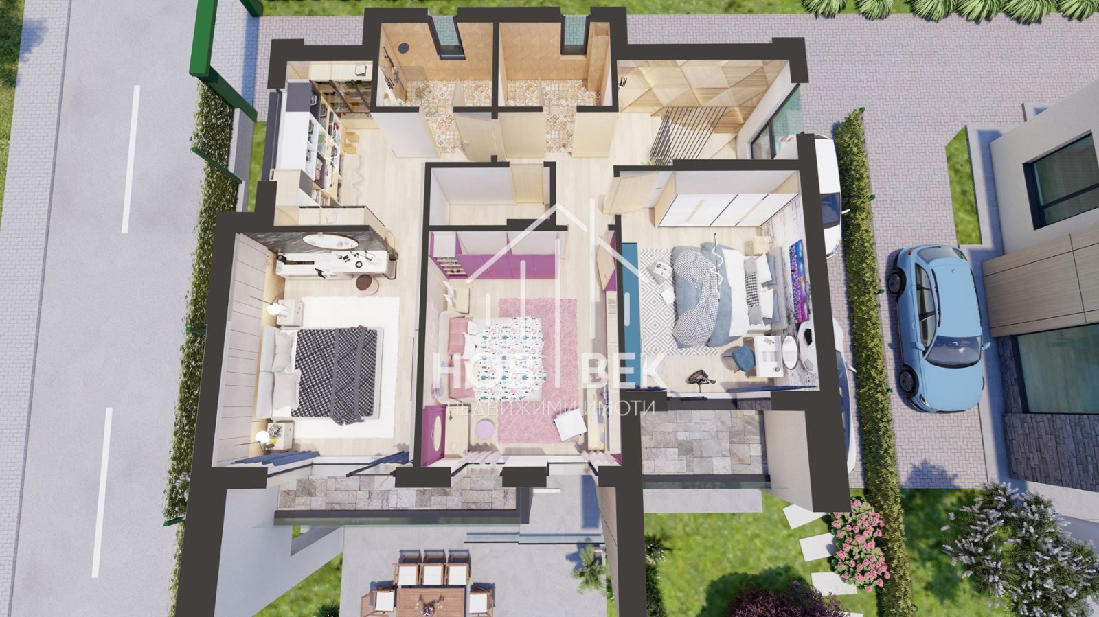Имотът съчетава модерна визия, светли и удобни помещения, както и собствен двор идеалното място за спокоен и уютен семеен живот.