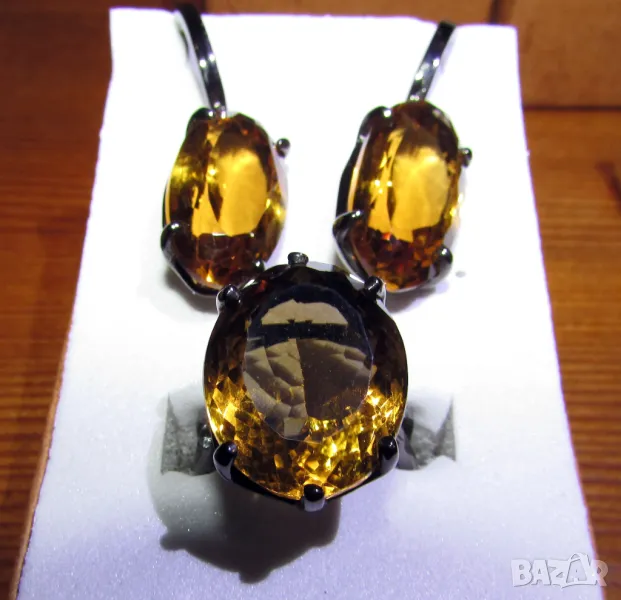 925 сребърен пръстен и обеци с цитрини, подходящи за подарък → Обява 50275738