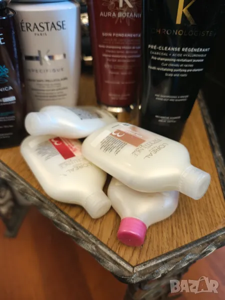 Вижда се добре коя е марката .Червената серия не е използвана.Черния дълбоко почистващ шампоан е ползван 2 пъти.Белив шампоан е за пърхот и е повече от половината.Душ гела е подарък и не влияе на цената .Не де продават отделно .Крайна цена