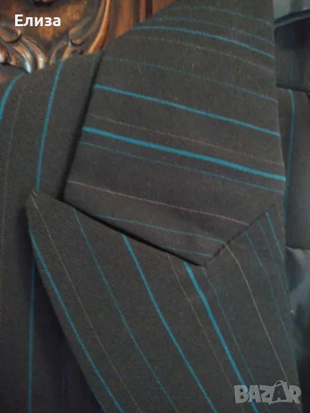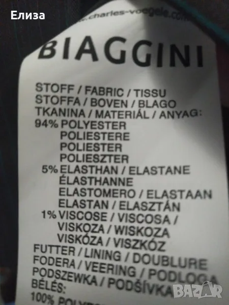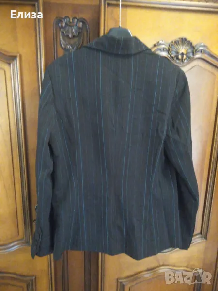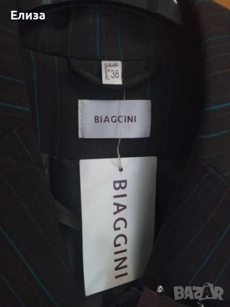 Дамско сако BIAGGINI. Цвят: кафяв на сини райета. Състав: външна част - 94% полиестер, 5% еластан и 1% вискоза; хастар - 100% полиестер. Ново с етикет.