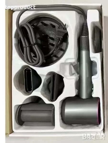 Мощни сешоари (1600W) с перфектно качество, с 5 приставки и поставка за стена. Има и филтър, който не позволява засмукване на косми и околен прах, който да Ви отива в косата.