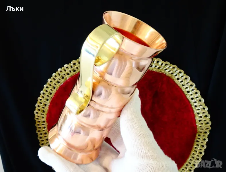 вино,халба,ръчно отлята от свръх масивна чиста червена мед с тегло 320 гр.Аз