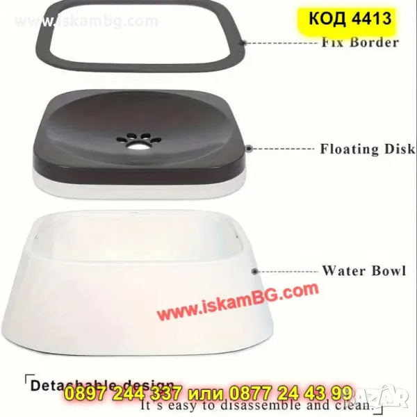 Кажете сбогом на локвите и мокрите подове с тази иновативна неразливаща купа за вода! С капацитет от 1.5 литра и интелигентна плаваща плоча, тя контролира потока на водата, като позволява на вашето куче или котка да пие спокойно, без излишно пръскане и разливане.