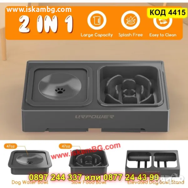 Неразливаща се купа за вода: Плаващият диск предотвратява разливането на вода, като същевременно предпазва козината на домашния любимец от намокряне (1,6 литра).