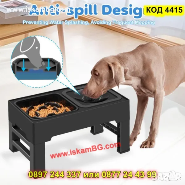 Регулируема стойка: 3 различни опции за височина – 20,5 см, 24,6 см и 28,8 см, за оптимална поза при хранене.