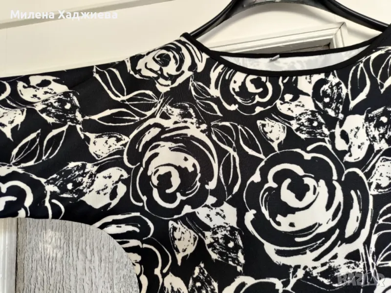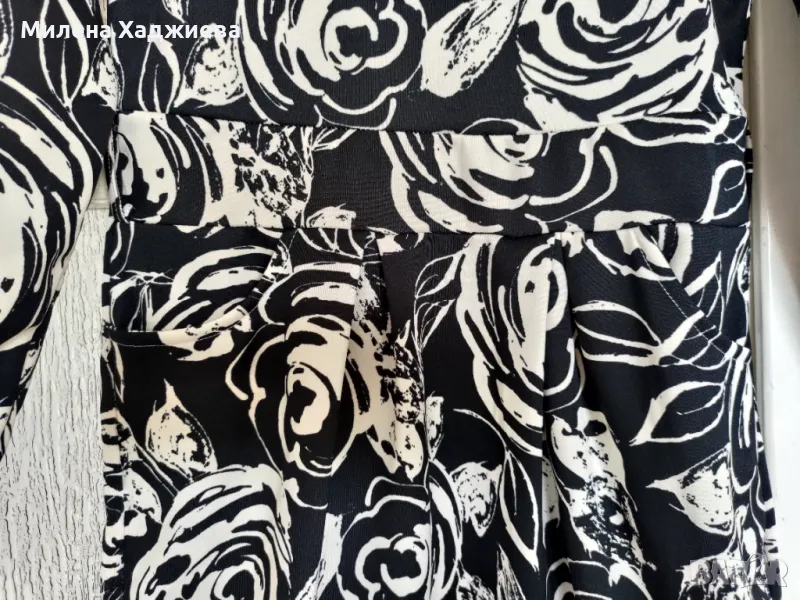 Дамска рокля в размер М/Л. Черна, на красиви бели цветя. Има 2 джоба