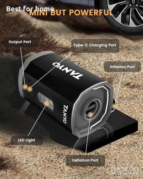 Електрическа въздушна помпа TANYO, батерия 3600 mAh, надуваем матрак, 2 в 1 мини електрическа помпа за надуване и изпускане с 5 въздушни дюзи за надуваем матрак, лодка, надуваем матрак, басейн, плувен пръстен.