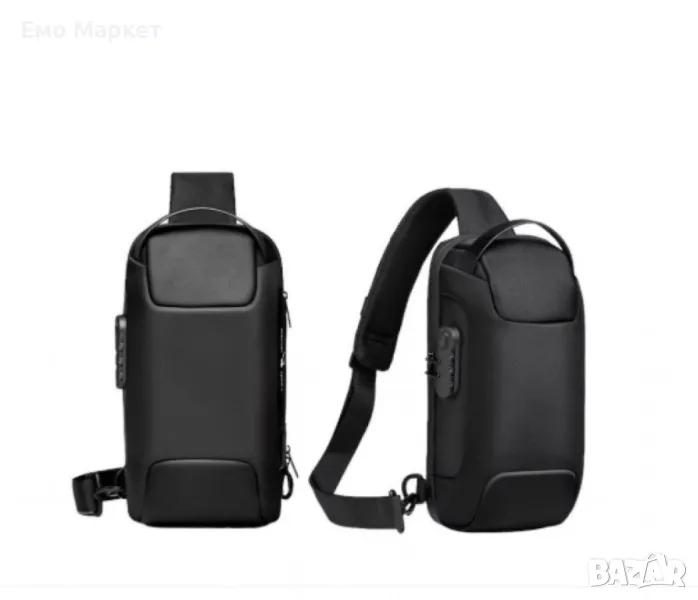 Мъжка чанта за през рамо Crossbody с USB зареждане, водоустойчива и с противокраден джоб