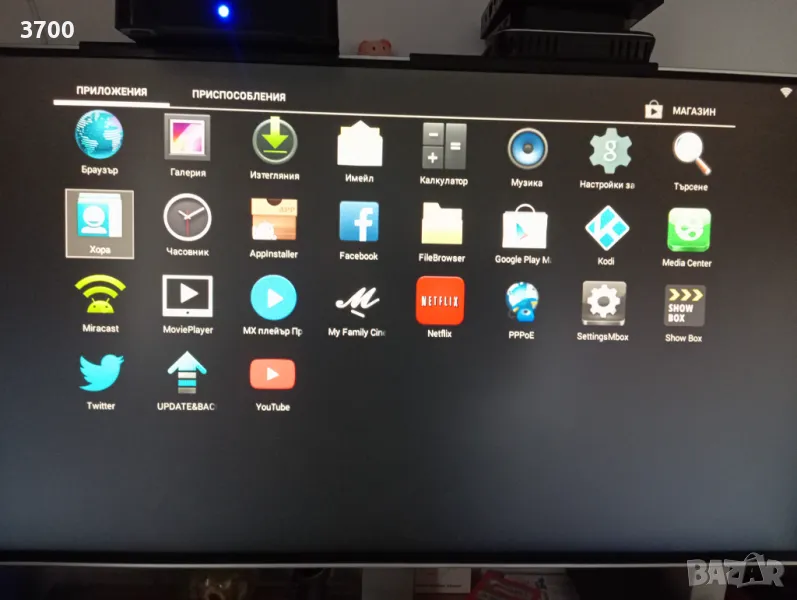 Работещ стар модел Андроид ТВ Бокс. Нямам представа какви приложения са останали съвместими. НЕ са настройвани телевизии и не се предлагат такива! 8GB вътрешна памет