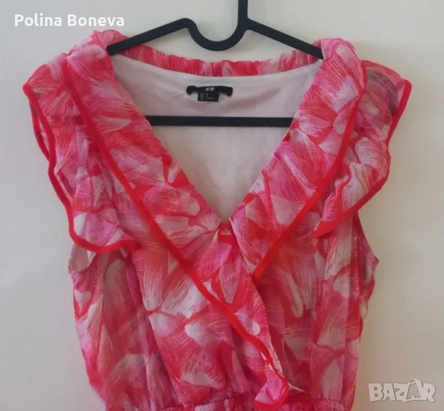 Продавам дамска рокля в цвят розово от H&M. Използвана е, в добро състояние.