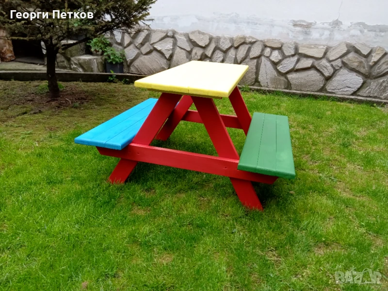Градинска детска масичка с пейки,цветна → Обява 50280074