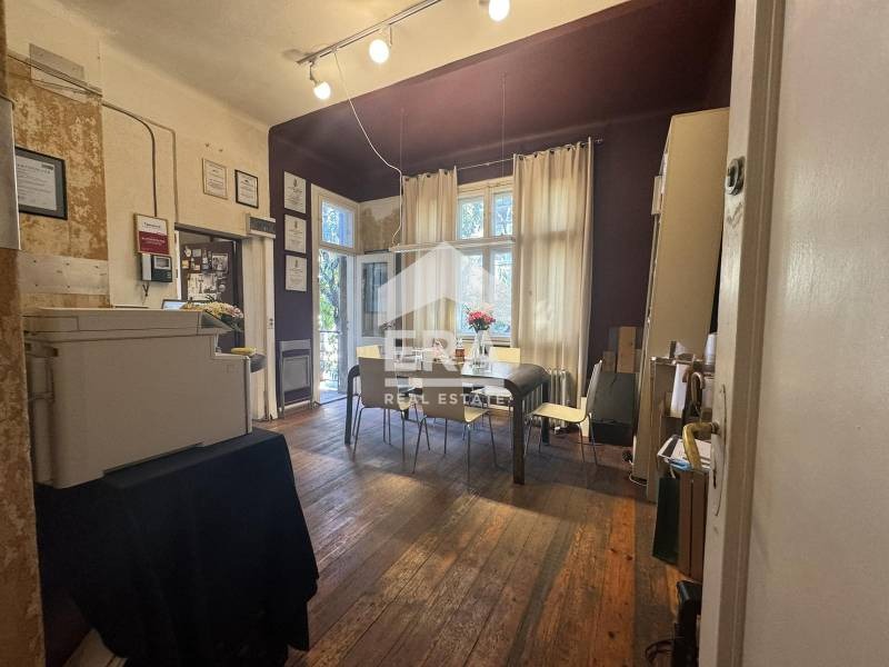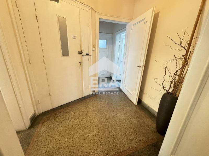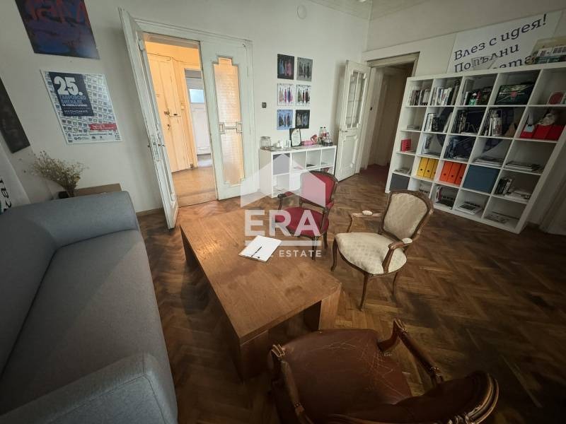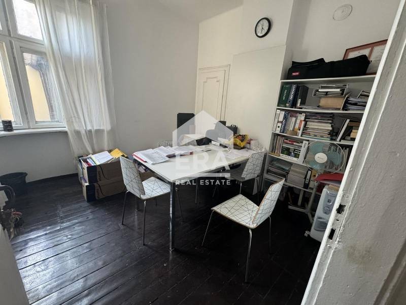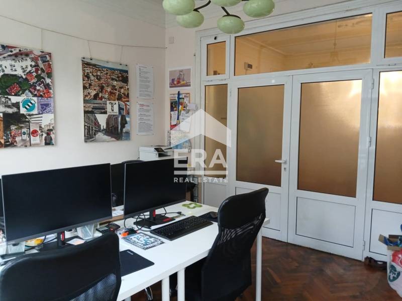 ЕРА Вива продава етаж от къща в непосредствена близост до Адвокатската градинка, гр. Варна. Имотът е с чиста жилищна площ от 186 кв.м. и се състои от просторен вестибюл, антре, осем стаи, три санитарни помещения и три тераси, като едната гледа към вътрешен двор. Жилището е с много високи тавани, светли и просторни помещения. Предлага се във вида от снимките. Възможност да обособяване на два отделни имота. Подходящ имот както за живеене, така и за различни видове офис дейност. Към апартамента има избено помещение с площ от 45 кв.м., перално помещение - 18 кв.м и земя - 110 кв.м.