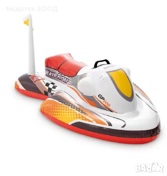 Надуваем морски джет с изключително издръжливи дръжки и широка основа за по-голяма стабилност. Той има оригинален, отличителен, елегантен дизайн и включва лепенка за ремонти. Идеален за игра и релакс, в морето или басейна, надуваемият джет ще се превърне във вашия най-добър приятел!