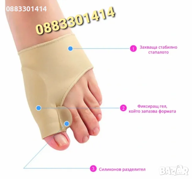 - Облекчава болката и помага за справяне с деформацията и повишава комфорта на пръстите.