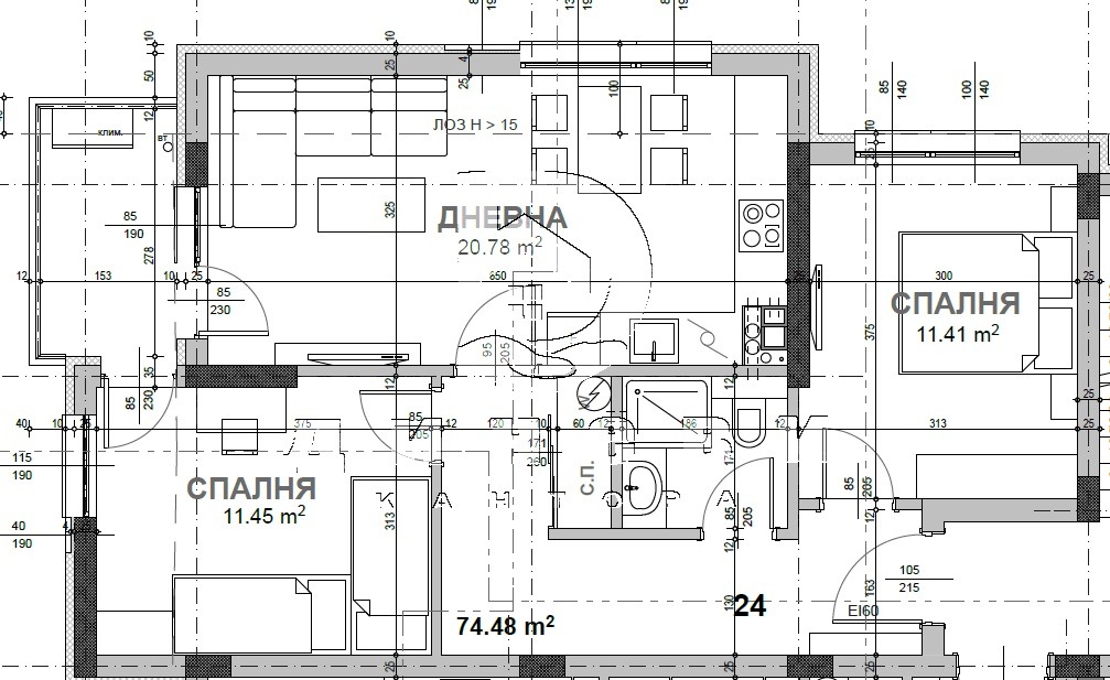 Жилищна площ: 75 кв.м.