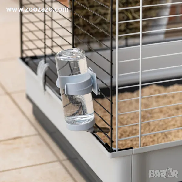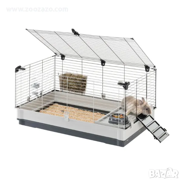 Вътрешни аксесоари: 1 бутилка за пиене, 1 стойка за сено, 1 малка къщичка с рафт и купа за парти 4
