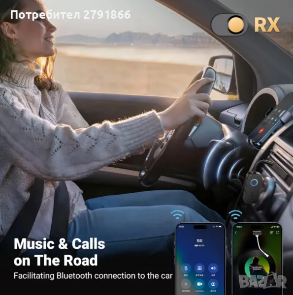 - 5. Забележка: Само режим RX поддържа използване на микрофон за разговори; различните Bluetooth приемащи устройства имат различно разстояние от адаптера; разстоянието се определя от по-добрите характеристики на антената на приемащото устройство.